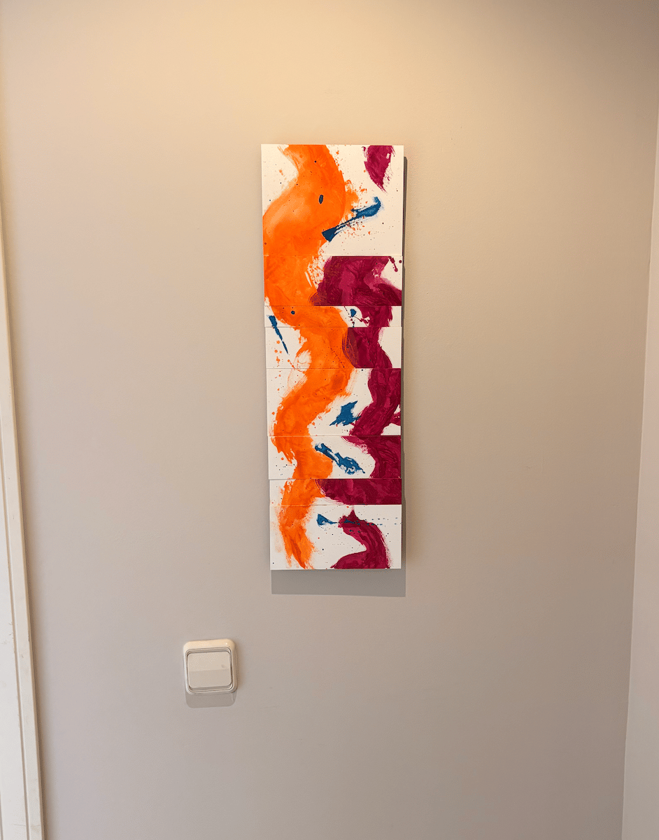 Plancha de acero inoxidable, PLA, pintura acrílica y acuarela e imanes de neodimio